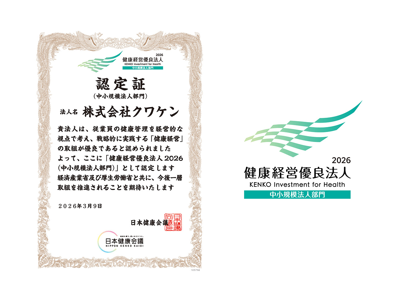 当社は、経済産業省および日本健康会議が共同で実施する「健康経営優良法人2026(中小規模法人部門)」に、2026年3月9日付で認定されましたのでお知らせいたします。当社が認定されるのは2021年から6年連続となります。